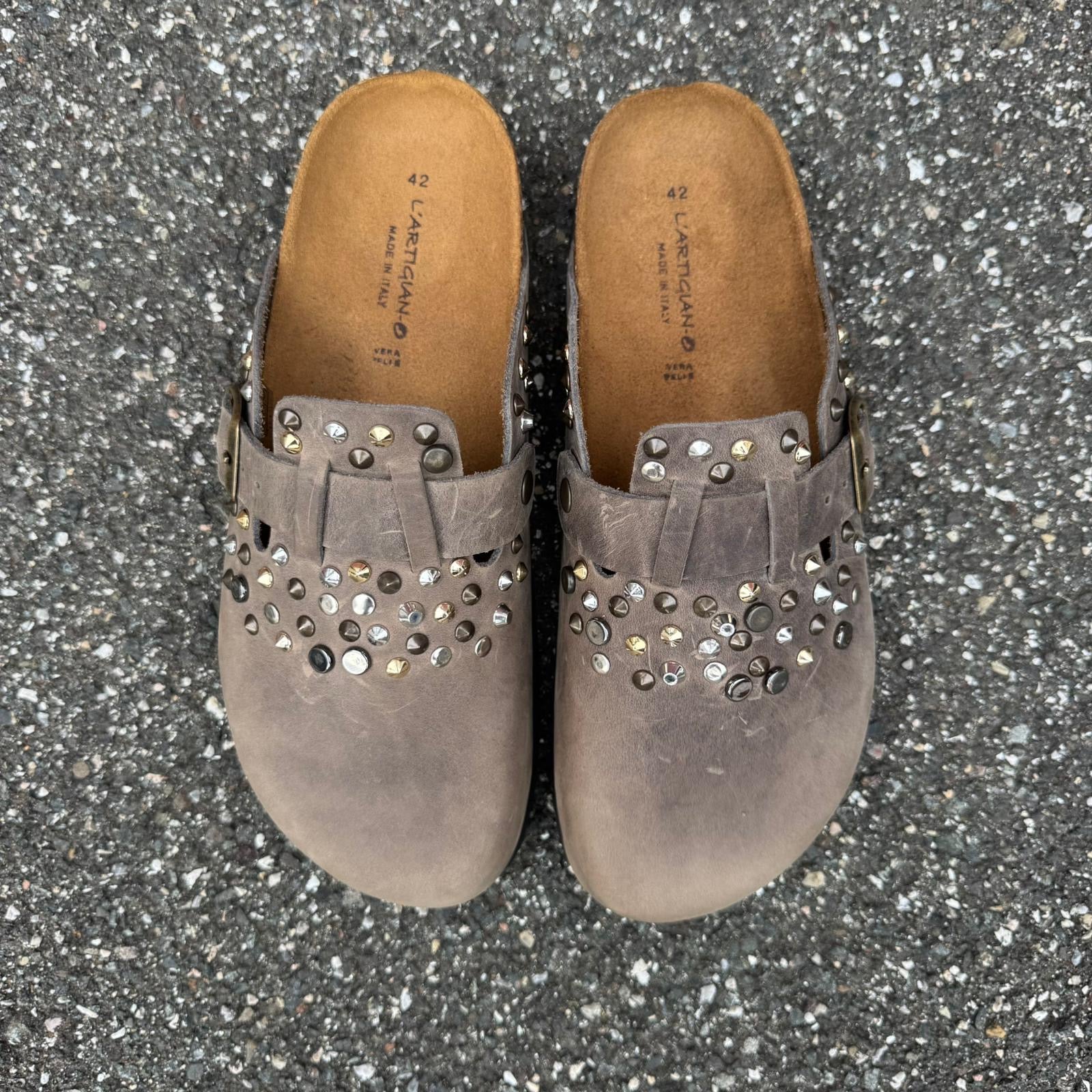 Borchie in ferro inserite a mano sui tuoi sabot, clogs, doppia fascia per renderle ancora più stilose!