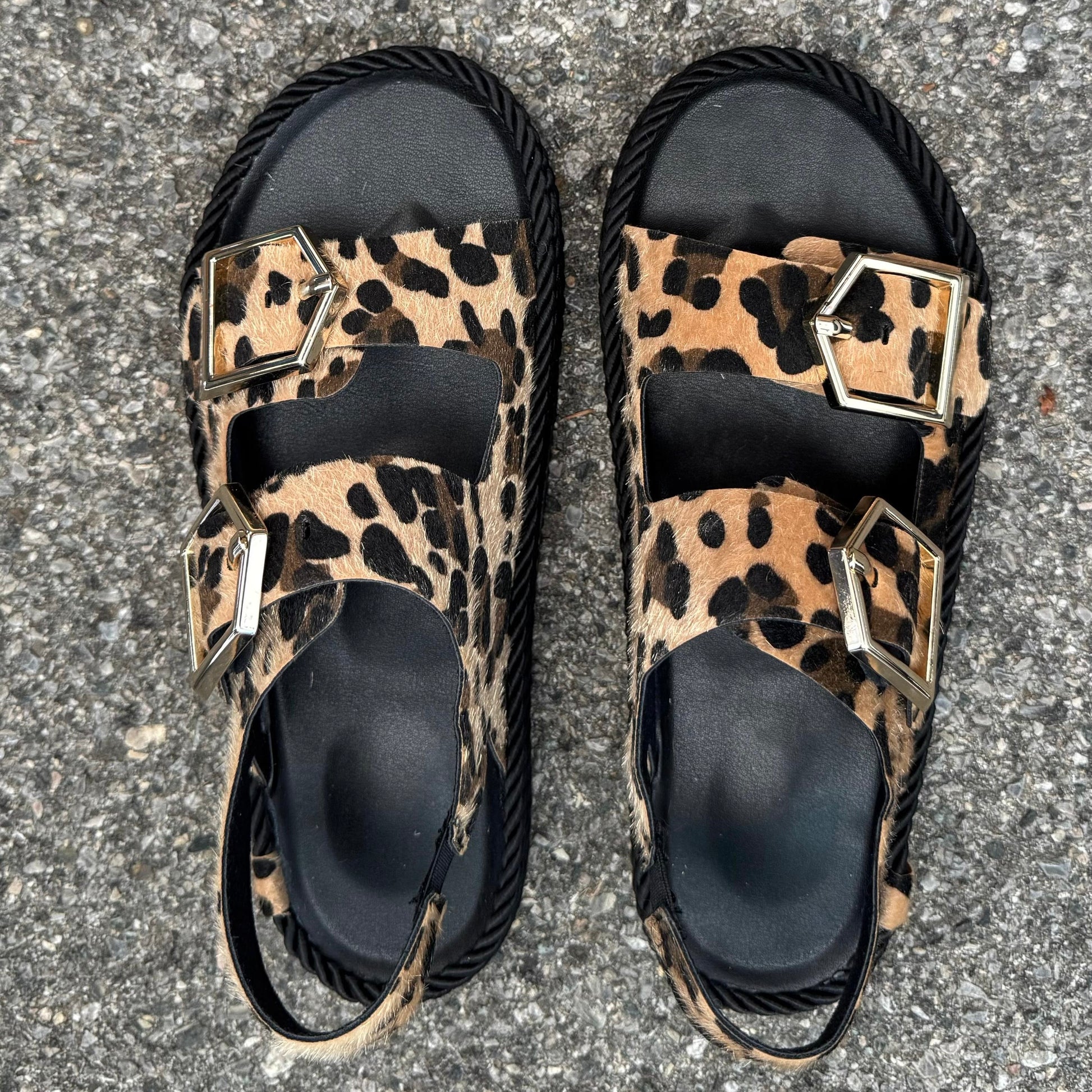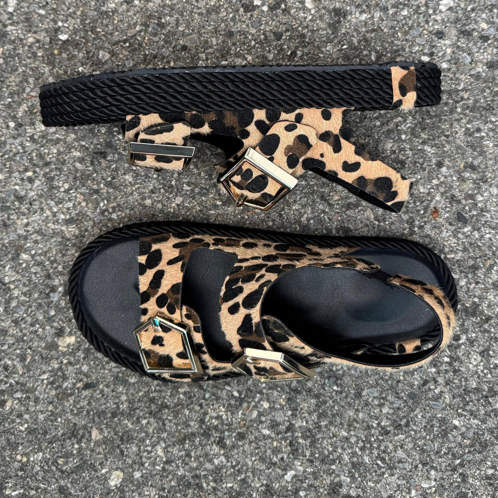 Sandalo doppia fascia, suola in sughero e cuoio e corda esterna, tomaia in pelle crosta di camoscio