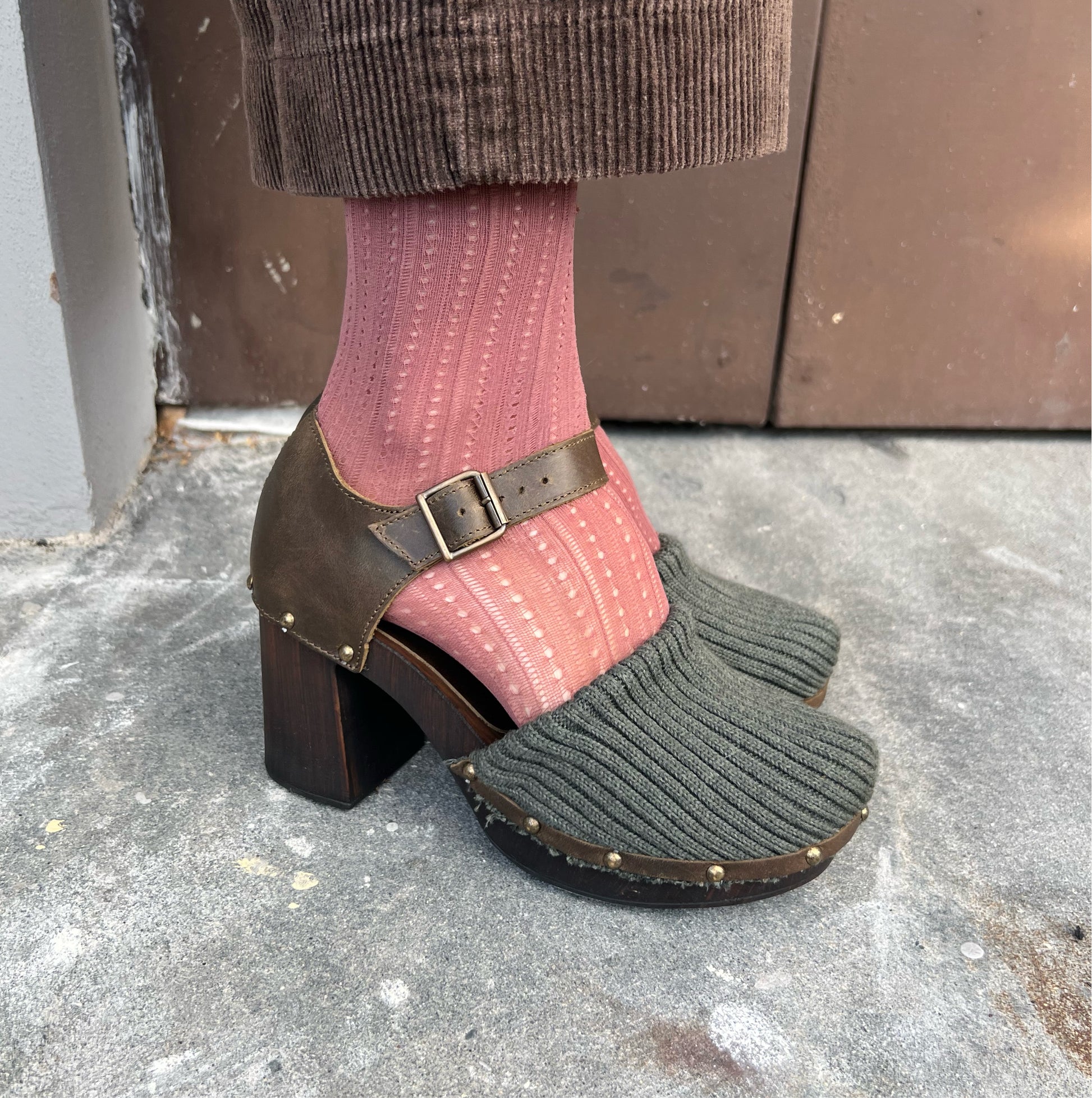 Zoccolo in lana, realizzato in Toscana, tacco 8 cm in poliuretano e 2 cm di plateau